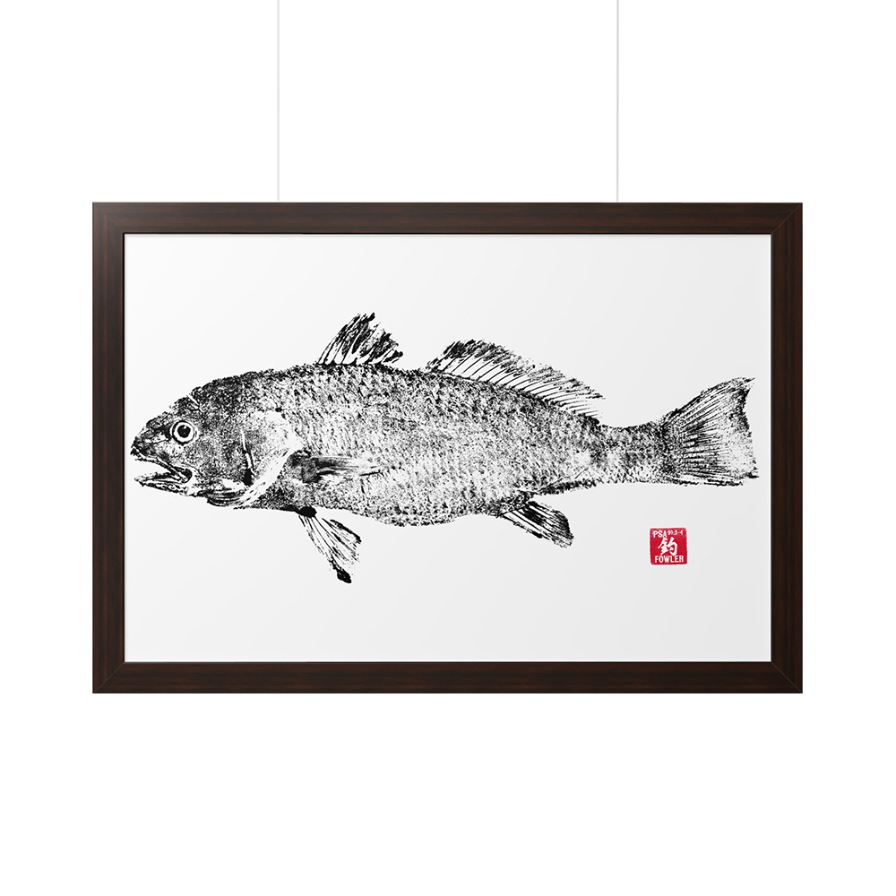 Created by using the traditional Japanese ink printing art known as Gyotaku by Fowler in 2024. Featuring archive-worthy ink and photo paper. A premium hardware inclusion on the backside guarantees clean hanging; making sure that the premium horizontal poster’s design comes across as it should.
