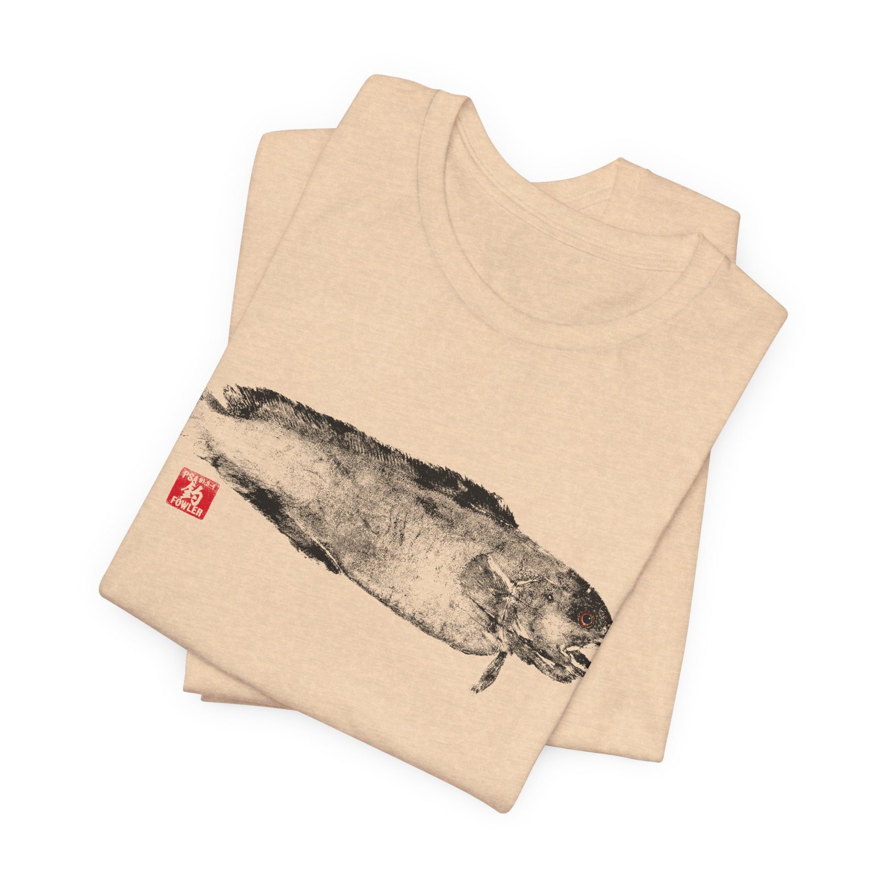 Created by using the traditional Japanese ink printing art known as Gyotaku by Fowler in 2024. This classic unisex jersey short sleeve tee fits like a well-loved favorite. Soft cotton and quality print make users fall in love with it over and over again. These t-shirts have-ribbed knit collars to bolster shaping. The shoulders are tapered for a better fit over time. Dual side seams hold the garment's shape for longer.